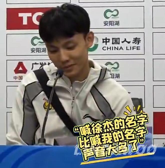 值得一提的是,本场比赛徐杰也是本场所有队员当中人气最高的球员。现场武汉球迷疯狂高呼徐杰的名字,也让徐杰体会了一把主场的感觉。在比赛结束之后,我们看到主教练杜锋也在赛后特意点名徐杰提到了这一点。当时在赛后的采访中,我们看到杜锋和徐杰出席了这一次的采访区。当时杜锋是直接点名徐杰,直言在现场武汉球迷呼喊徐杰的声音已经盖过了呼喊自己的声音,疯狂调侃徐师傅。徐杰在旁边笑得也有些害羞和不好意思。